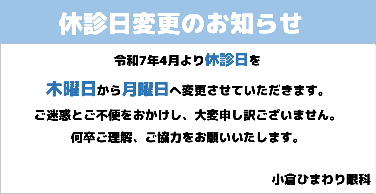 ※月曜日が祝日の場合は休診。 - 幅広い層の目の健康を守ります。治療や検診などについて、丁寧でわかりやすい診察を心がけております。